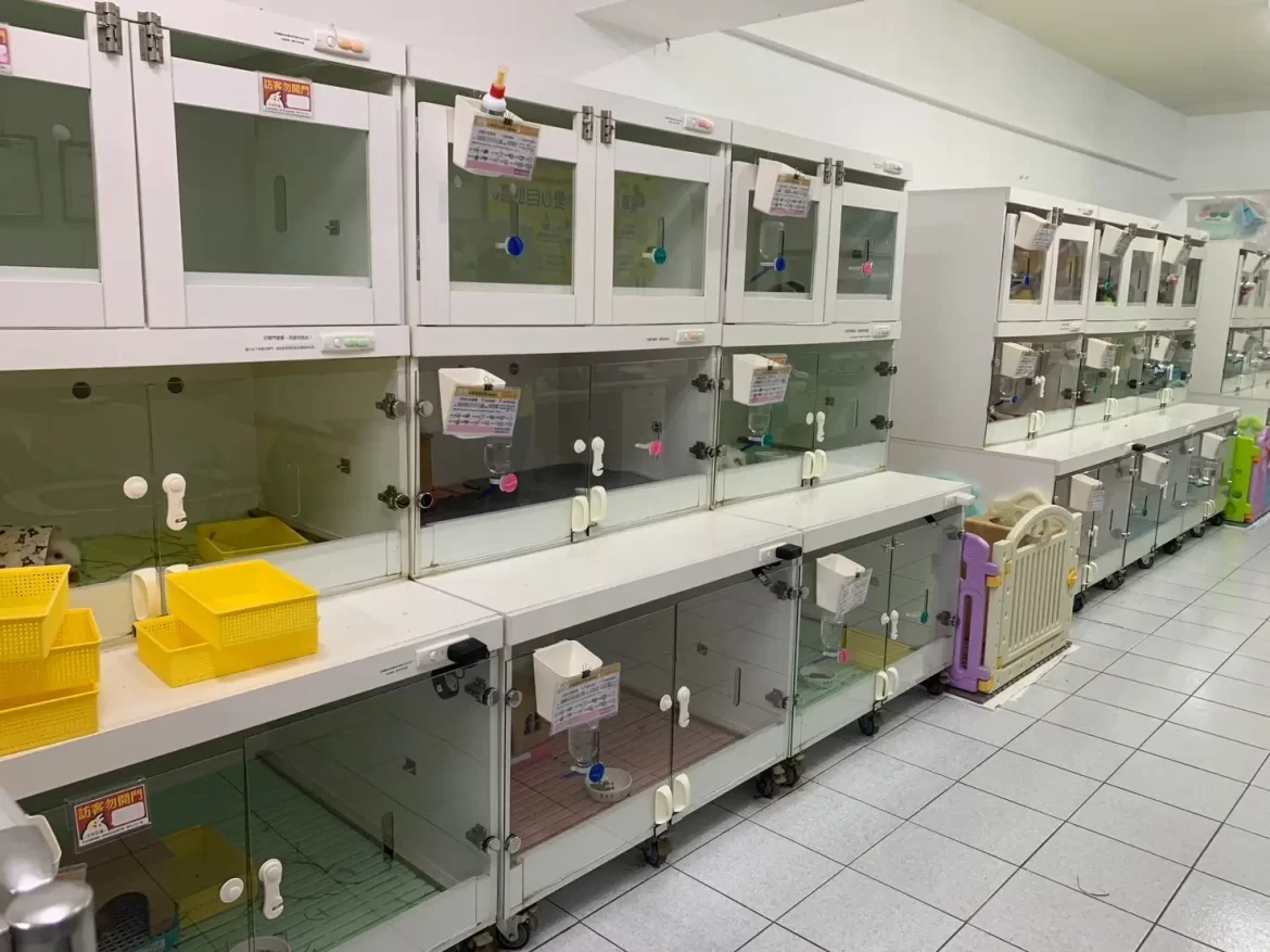 每隻進來都有名牌,有註明每隻鼠兔的狀況,是否可以開門摸(基本上天竺鼠是不能開門摸的,只能透過玻璃看它們。),白色的那個小盒子叫醫療盒,若有不用冰的補給品、藥物會放這兒。