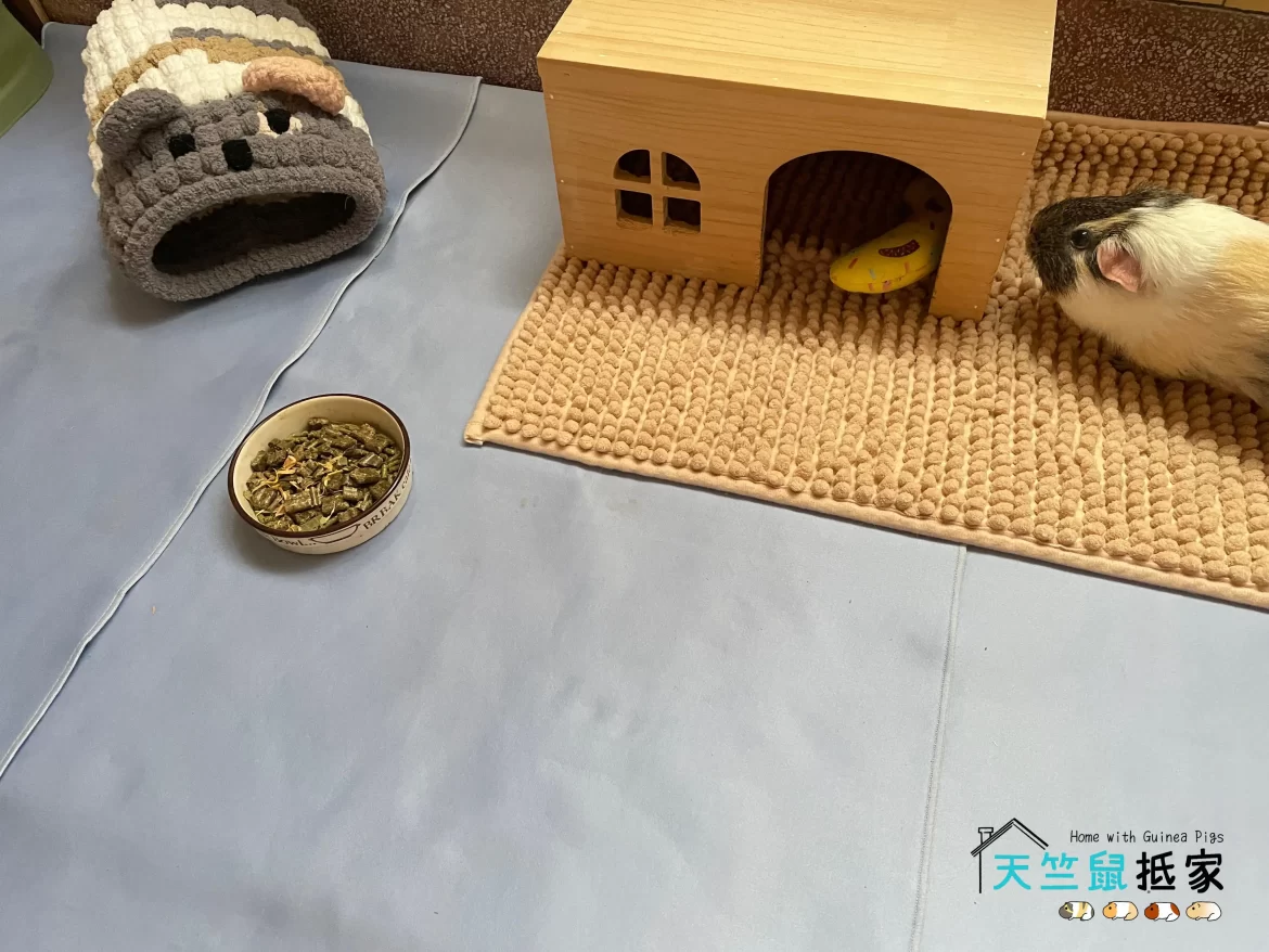 天竺鼠的墊材非常的重要,通常會採用兩層來鋪設,底部採用軟式墊材如巧拼、瑜珈墊等等,表面使用舒適好清掃材質。